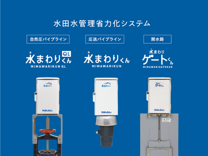 この様な背景を踏まえ、水管理労力を削減し、かつ合理的な水分配により米品質を確保でき、開水路、パイプラインの両方において同じ使い勝手で利用可能な「水まわりくんシリーズ」の開発および市場投入を行いました。