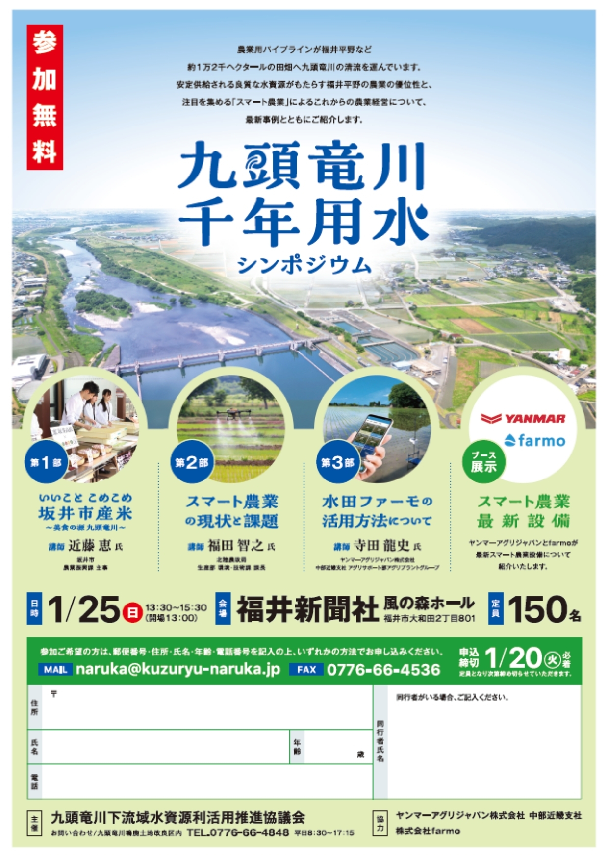 2026年1月25日(日)に福井新聞社 風の森ホールで開催される『九頭竜川千年用水シンポジウム』へ参加いたします。