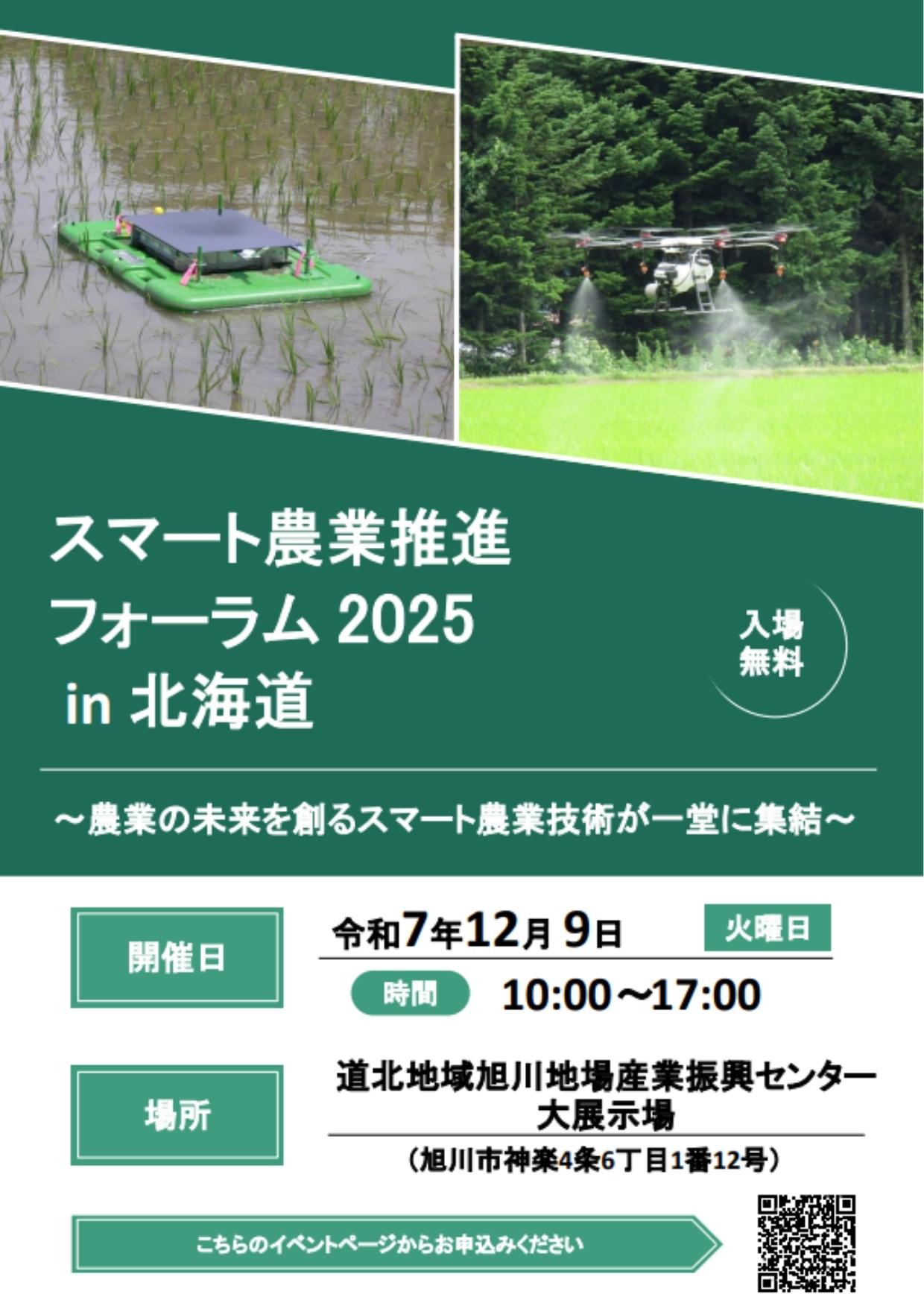 2025年12月9日(火)に北海道の道北地域旭川地場産業振興センター大展示場で開催される『スマート農業推進フォーラム2025in北海道』へ参加いたします。