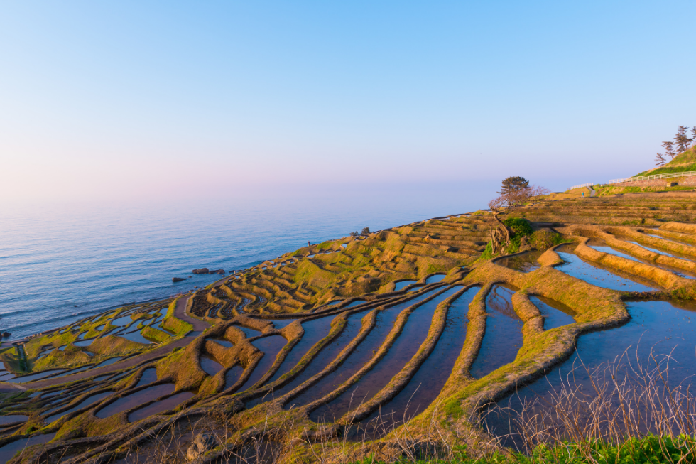 傾斜地に築かれた棚田は、四季折々に表情を変える壮大なアート作品のようです。春の田植え前の水が張られた「水鏡」、夏の青々とした稲、秋の黄金色の稲穂、冬の雪景色など、訪れる人々に感動を与える独特の美しさがあります。これらの景観は「日本の棚田百選」などに選定され、多くの人々を魅了しています。