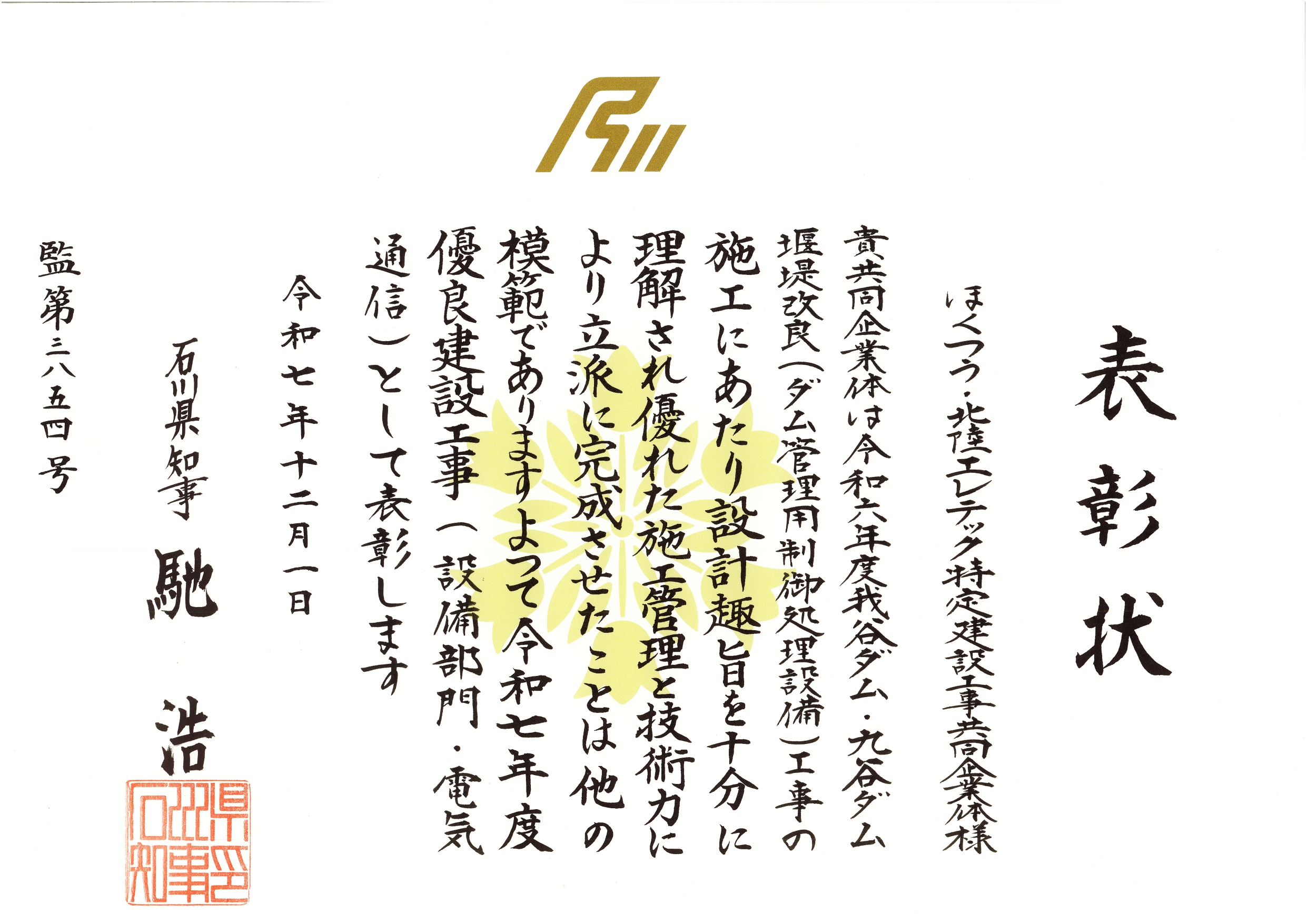 令和7年12月1日、石川県知事より、