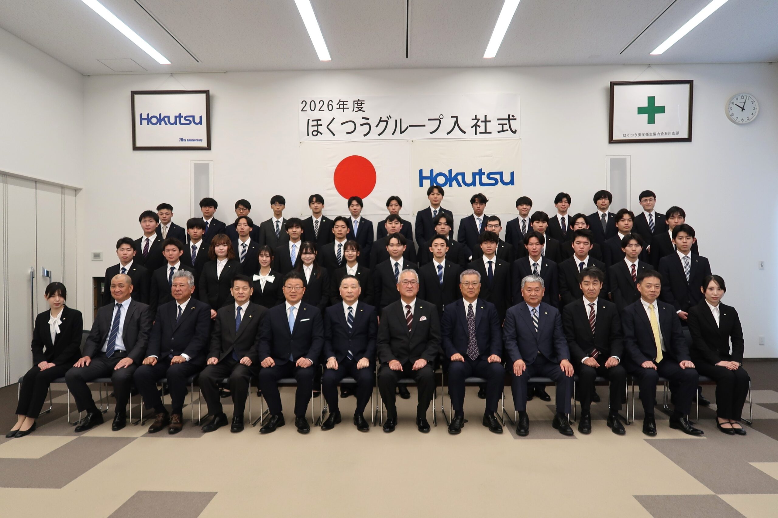 今年も例年通り、本社に集合し、ほくつうグループ全体で40名の新たな仲間を迎え入れました。